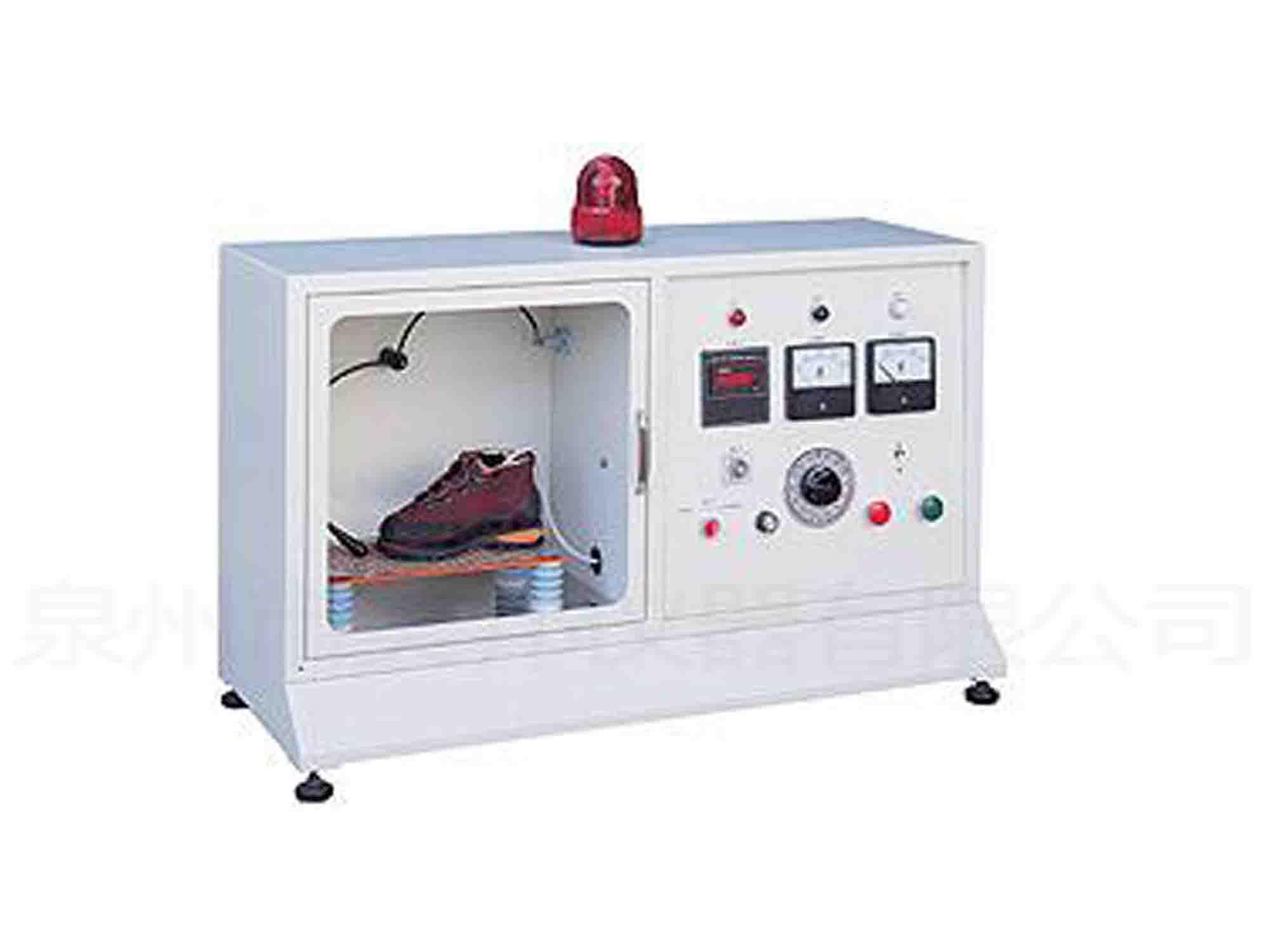 本機(jī)系用來(lái)測(cè)試鞋底材料或絕緣鞋材,在施以一定之電壓值,并持續(xù)一段特定時(shí)間后,以其所能承受的電壓值,來(lái)決定其耐電壓的特性。