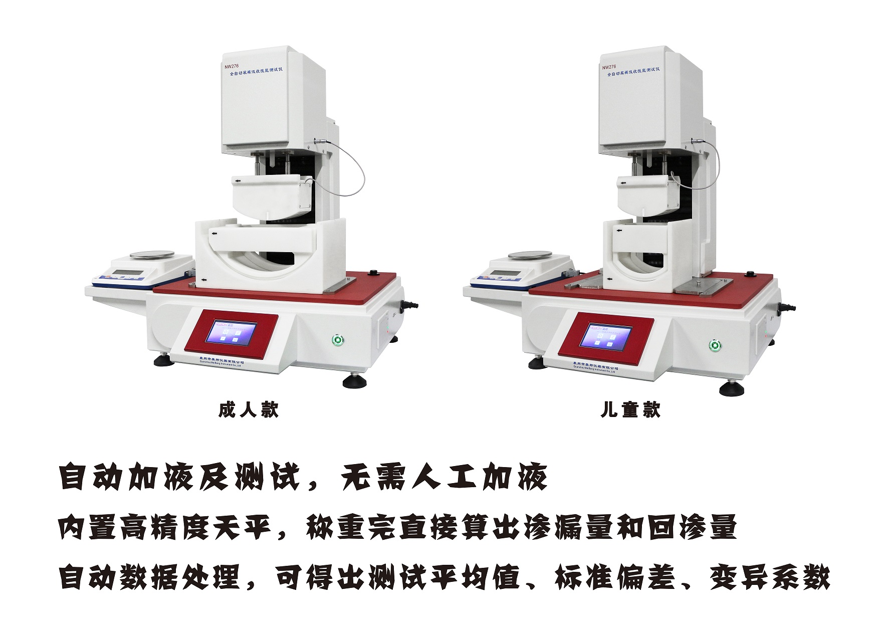 用于測定紙尿褲、紙尿片的吸收速度、回滲量和滲漏量等滲透性能。